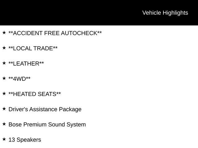 **ACCIDENT FREE AUTOCHECK**, **LOCAL TRADE**, **LEATHER**, **4WD**, **HEATED SEATS**, 13 Speakers, Auto High-beam Headlights, Backup Collision Intervention (BCI), Blind Spot Warning, Bose Premium Sound System, Driver's Assistance Package, Heated Front Bucket Seats, Intelligent Cruise Control (Full-Speed Range), Lane Departure Warning System, Leather-Appointed Seats w/Mocha Burl Trim, Power Liftgate, Power moonroof.