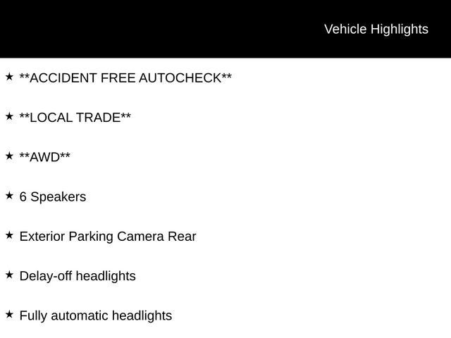 **ACCIDENT FREE AUTOCHECK**, **LOCAL TRADE**, **AWD**, AWD, 6 Speakers, Delay-off headlights, Exterior Parking Camera Rear, Fully automatic headlights.