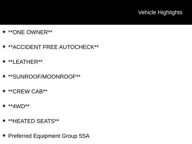 **ONE OWNER**, **ACCIDENT FREE AUTOCHECK**, **LEATHER**, **SUNROOF/MOONROOF**, **CREW CAB**, **4WD**, **HEATED SEATS**, 10-Speed Automatic, 4WD, Black Leather, 120-Volt Bed Mounted Power Outlet, 120-Volt Instrument Panel Power Outlet, 170 Amp Alternator, 2 Charge/Data USB Ports Inside Center Console, 2 Type-C Charge-Only Rear USB Ports, 2 USB Ports, Auto-Locking Rear Differential, Auxiliary External Transmission Oil Cooler, Bed View Camera, Chrome Header w/Signature Denali Chrome Grille, Chrome Recovery Hooks, Chrome Wheel To Wheel Assist Steps, Color-Keyed Carpeting Floor Covering, Compass, Deep-Tinted Glass, Electric Rear-Window Defogger, Electrical Steering Column Lock, Floor-Mounted Center Console, Front Rainsensing Wipers, GMC Connected Access Capable, HD Surround Vision, Heated 2nd Row Outboard Seats, Heated Driver & Front Outboard Passenger Seating, Heavy-Duty Air Filter, Hill Descent Control, Hitch Guidance, Hitch Guidance w/Hitch View, In-Vehicle Trailering App, Integrated Trailer Brake Controller, Keyless Open & Start, LED Cargo Area Lighting, OnStar & GMC Connected Services Capable, Perimeter Lighting, Power Door Locks, Power Front Passenger Windows w/Express Up/Down, Power Front Windows w/Driver Express Up/Down, Power Rake & Telescoping Steering Column, Power Rear Windows w/Express Down, Power Sliding Rear Window w/Rear Defogger, Power Sunroof, Preferred Equipment Group 5SA, Premium Bose 7-Speaker Sound System, Push Button Start, Rear Cross Traffic Braking, Rear Pedestrian Detection, Rear Wheelhouse Liners, Remote Vehicle Starter System, SiriusXM w/360L, Spray-On Pickup Bed Liner w/Denali Logo, Steering Wheel Audio Controls, Theft Deterrent System (Unauthorized Entry), Trailer Camera Provisions, Trailer Side Blind Zone Alert, Trailering Package, Ultrasonic Front & Rear Park Assist, Universal Home Remote, Ventilated Driver & Front Passenger Seats, Wi-Fi Hotspot Capable, Wireless Charging, Wireless Phone Projection.